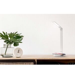 Tzumi 7998 Qi Wireless Phone Charging Desk Lamp white slim design