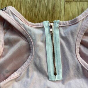 Purchased this darling pink tank top with zipper detail from a boutique during European travels. I cannot figure out the brand but it’s high quality. Size 6