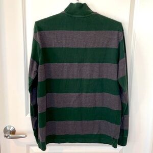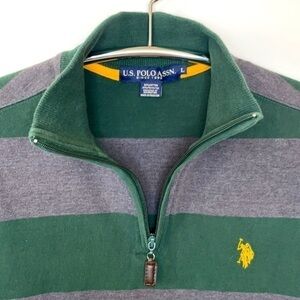 Men’s U. S. POLO ASSN. Green & Gray Horizontal Striped Quarter Zip Collard Long Sleeve Shirt Size Large