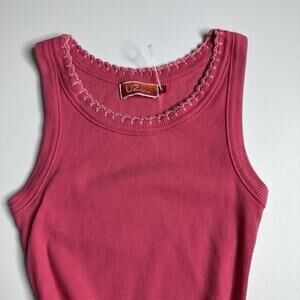 U2 Ladies Y2k Pink Ribbed Tank Embroidered Trim Coquette Baby Tee Dollcore XS