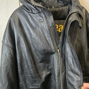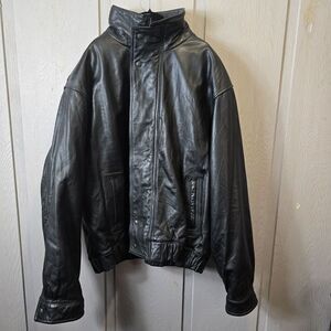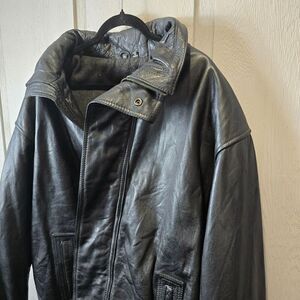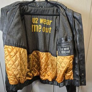 U2 Wear Me Out Mens 2XLT Black Leather Bomber Jacket Coat - Heavy Y2k 90's