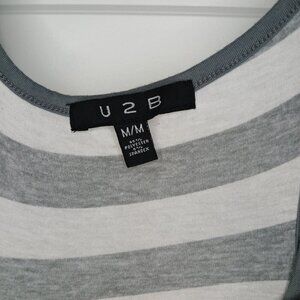 U2B Striped Maxi Dress White And Gray Size Medium Sleeveless in good condition. There is a small stain on the back of the dress. The stain is outlined in photo 5 & 6.