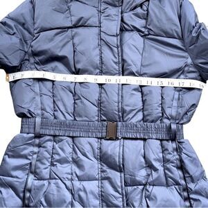 Love the tie belt, so stylish! There is a very high neck you can pull up for cold, snowy weather. There are zip pockets on each side and a hidden velcro pocket on inside of jacket. There are 6 snap buttons up front plus zipper to close. The cuffs have inside elastic gator to keep your wrists warm. Grosgrain ribbon accents on front and back sides. Invisible zipper hides a nice thin hood for easy accessibility.