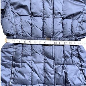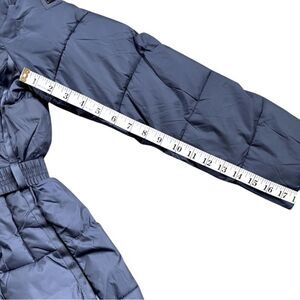 Fend off the freeze with this insulated puffer coat styled with a cozy funnel collar and a belted middle.