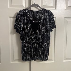 U79- Notations Black Layered Short Sleeve Blouse Shirt Top Size Petite Large