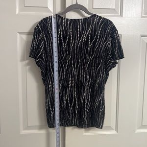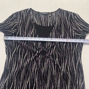 Notations Black Purple Silver Patterned Layered Short Sleeve Ribbed Stretchy Blouse Shirt Top Size Petite Large.
