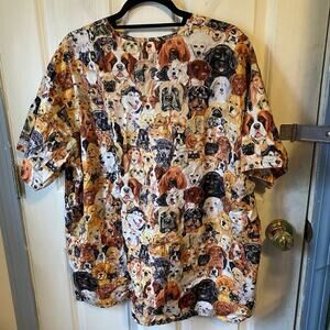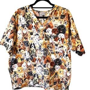UA SCRUBS TOP Sz 2X DOGS All Breeds All Over Print Animals Lover Doggie Mama