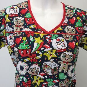 UA Scrubs Christmas Scrub Top Size XS/Small Penguin Santa Medical Nurses Holiday