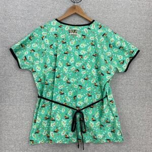 UA Scrubs Scrub Top Womens Large Green Nursing Vet Medical Uniform Short Sleeve