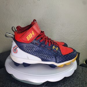 UA Shoes Harper 6 Mid RM Youth Baseball Cleats 4Y Stars Stripes 3024326-100