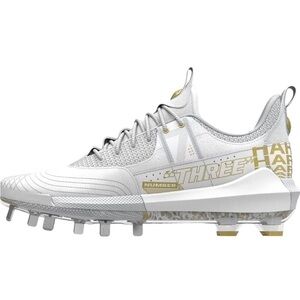 UA UNDER ARMOUR MEN’S HARPER 7 LOW MEDAL CLEATS WHITE/ GOLD NEW
