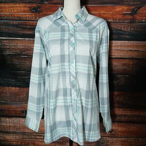 UA Under Armour Top Womens L High Tide Heatgear Active Shirt Plaid Button Front