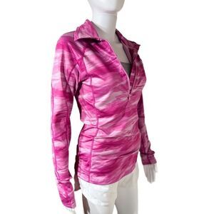 Purple cold weather active long sleeve top from Under Armor! Pullover style with 3/4 zip closure, pop up/foldover neck, thumb holes & UA logo on zipper and neck. Signs of wear include some piling on internal fleece lining, otherwise no imperfections or signs of wear!