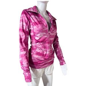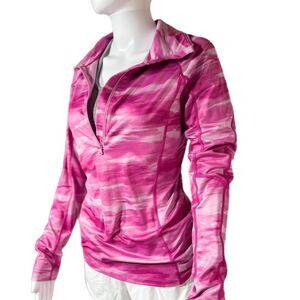 Purple cold weather active long sleeve top from Under Armor! Pullover style with 3/4 zip closure, pop up/foldover neck, thumb holes & UA logo on zipper and neck. Signs of wear include some piling on internal fleece lining, otherwise no imperfections or signs of wear!