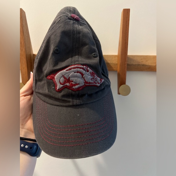 UARK Razorback Hat, great condition, plaid detail, woo pig razorback decal, velcro fasten