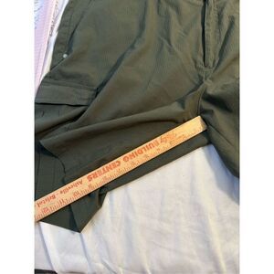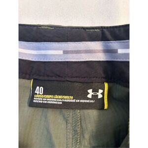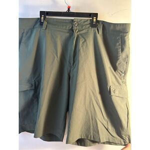 UA army green cargo shorts size 40. snap button. cargo pockets. poly/nylon? no label.