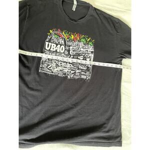 UB40 “Bigga Baggariddim” graphic tee featuring reggae-inspired artwork. Soft cotton black shirt with bold print on the front and a blank back. Tagged Next Level Apparel size XL. In great preowned condition with no holes or stains.