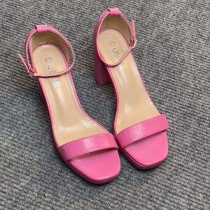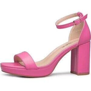 UBEE Women's Size 9.5 Open Toe Ankle Strap Block Heels Sandals Barbie Pink NEW.