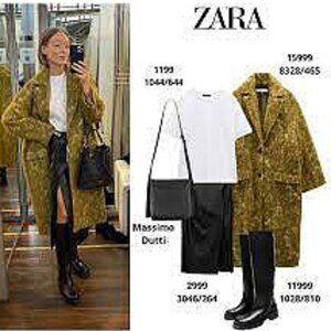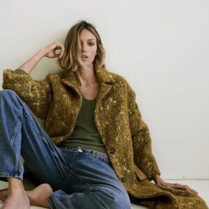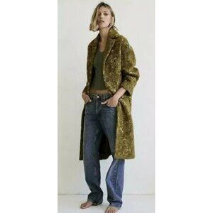 MUST-HAVE RARE FIND! This is a strikingly beautiful limited edittion statement coat from Zara with signature urbal metropolitan vibe! It's one of those timelessly hot pieces that screems chic and luxury! Crafted from gorgeous Ligth Olive Green (Oil) multitexured, multicolored wool blend adding instant drama and depth. This outanting quality soft texured wool/alpaca blend conserves heat in winter and absorbs humidity while maintaining a dry touch (39% cotton · 23% wool · 18% polyester · 8% alpaca · 6% acrylic · 6% other fibres). Soft, comfy, lightweight, yet so warm. Designed with a longline oversized single-breasted silhouette, notched lapels, front button closure, dropped shoulders, long, wide, buttons adorned sleeves, two side flap pockets, back vent at the hem, and smooth satin lining in matcching color (100% viscose). It's truly uniquie, excquisit coat, very well made and tailored. Its also surprisingly versatile piece that will look equally fabulous styled with your favorite leather pants/ distressed denim skinnies, as it does with an elegant outfit. THe matrial tag was removed due to bulkiness. SizeSX/S. Fit larger. New, Unworn, the pockets are still sewn shut. Approximate measurements flat: pit to pit 24", shoulder to shoulder 22", Sleeve 20.25", Waist 21.5", Length 45. NWOT from a clean, smoke-free home.