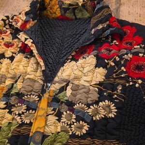 UBU Black Beaded Asian-Inspired Quilted Bomber Jacket Sz L Boho Dark Cottagecore