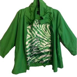 UBU Bright Green Zip Up Womens Jacket Size Medium Zebra Print Lining Windbreaker