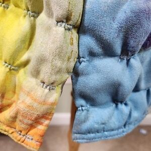 (reversible however there is a small spot on solid side as seen in photo, multi-colored side in EUC)