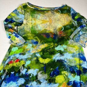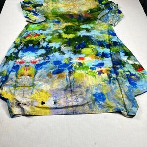 UBU Painterly Abstract Print Swing Dress 3/4 Sleeve Travel Artsy Tunic Size L