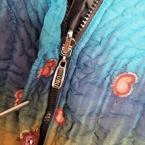 UBU Womens Size S Blue Indian Print Popcorn Crinkle Bubble Travel Jacket NICE!