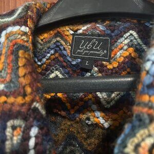 New UBU womens coat. Multicolors herringbone. Great for Fall! Snap front. Nice! Knee length.