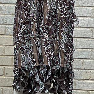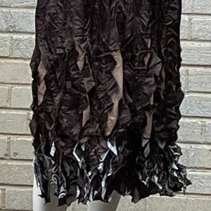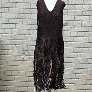 Ubu Fantasiz/FUDGE REVERSABLE DRESS stretchy and finely pleated; slightly flared BOTTOM, Brown, blue, and tan print New with tag;