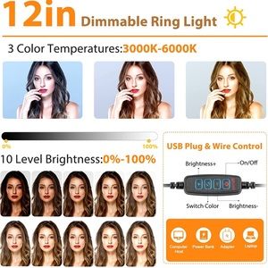 12in dimmable Ring light set with remote, 3 color light settings Perfect for Vlogging/ Video Recording /YouTube/TIK Tok, etc.