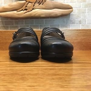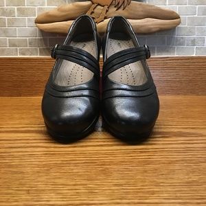 Gently Worn. all-day comfort. Loaded with cushioning, shock absorbing materials. Easily accommodate custom orthotics. Smooth, burnished leather upper with adjustable Mary Jane vamp strap for a secure fit.Leather-lined interior with a padded heel collar.Microsuede lined removable molded insole is lightweight, antibacterial, breathable. Polyurethane unit bottom is lightweight and extremely durable. Absorbs and returns energy to reduce fatigue.Approx. 1 1/4 " inch heel height.AB19220 BLACK.
