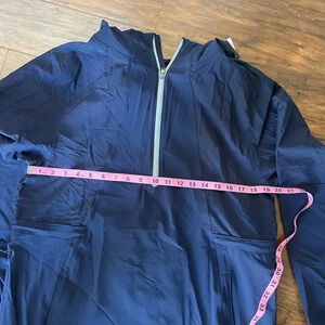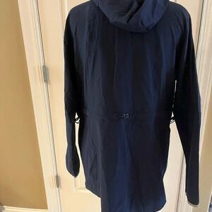 this is brand new with tags in a women’s size small. This is made by Under Armour. It is a three-quarter zip jacket with a hood. Breathable, thin material. It has pockets that zip it also has an adjuster in the back so that you can tighten or loosen around the waist. All of my items come from a smoke-free home. My items are also priced much lower than what you would pay for in the stores. Considerate offers are always welcome. Thanks for stopping by!