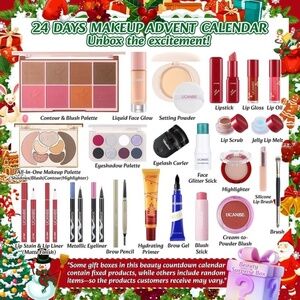 Countdown the 2025 Christmas season with this makeup advent calendar featuring 24 individually numbered gift boxes. Each day unwraps a different makeup product, such as lipstick, blush or eyeshadow, making it a fun festive Christmas gift for women and teen girls. This beauty advent calendar is designed to add excitement to every day of December, combining the thrill of discovery with a complete makeup kit that’s perfect for Christmas morning.