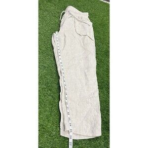 UCHUU Women's High Rise Wide Leg Drawstring Linen Pants Cropped Khaki SZ M
