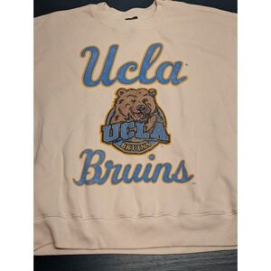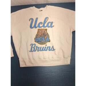 Show your support for the UCLA Bruins with this Hollister sweater. Made with high-quality materials, this sweater is perfect for any fan looking to stay warm and stylish during the games. The white color and medium size make it a versatile piece that can be paired with any outfit, while the team logo on the front adds a touch of Bruin pride. Whether you're at the game or just running errands, this sweater is a must-have for any true UCLA fan.