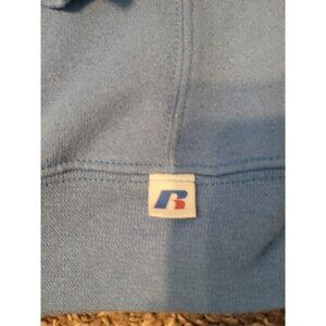 The UCLA Bruins Russell Sweater Spellout Mascot is a men's collegiate preppy sweater in size small, featuring the iconic UCLA Bruins team logo and mascot. Made by Russell Athletic, this blue sweater is a stylish and comfortable way for fans to show their support for their favorite college team. Perfect for wearing at games, functions, or simply while lounging around, this sweater is a must-have for any UCLA Bruins fan.
