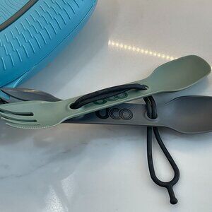Included tether keeps any contents safely contained and secures the spork to the rest of the set.