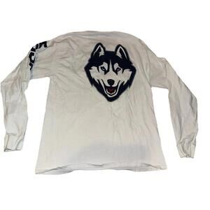 UCONN Huskies Champion White Long Sleeve Shirt Size Large? Logo Sellout Arm Y2K