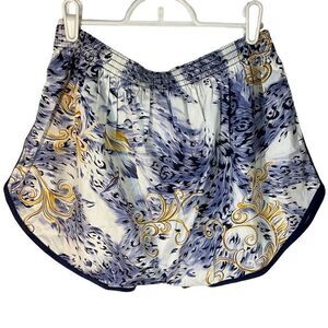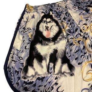 NWT Ozizo Gym Shorts! So cool! Huskies! From Zen Plaza in Vietnam! Huskies on regal blue and gold baroque design with blue piping. Elastic waist, notched. Unisex 100% cotton. Flat lay 15” W, 14” L, 12.5” R, 4” I approx. #huskies #uconn #dogs