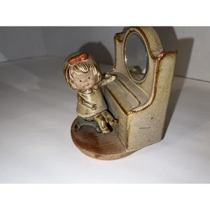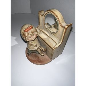 This vintage mid-century kitsch music box features a charming UCTCI girl at a vanity table. The hand-crafted design showcases intricate details and a playful aesthetic that will make a wonderful addition to any collection. Made in Japan during the pre-1900 time period, this music box exudes a sense of history and nostalgia.