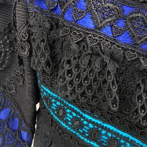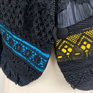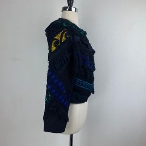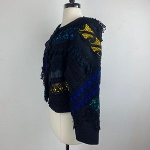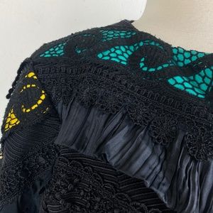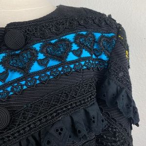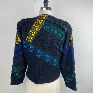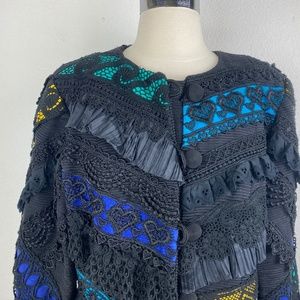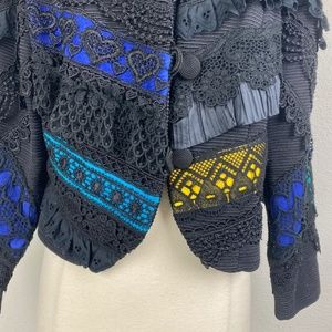 UDO Womens Black Crop Jacket Size 8 Bold Artsy Avant-Garde Ruffles Embroidery