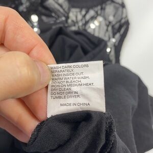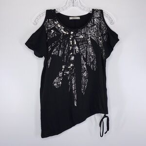 UDOT Black Asymmetrical Hem Cold Shoulder Sequin Short Sleeve Blouse