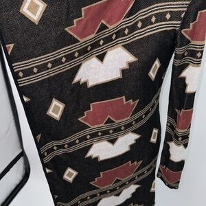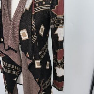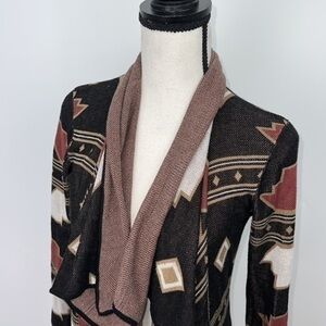 UEC Guess Aztec tan/ maroon open front waterfall cardigan mid-length XS