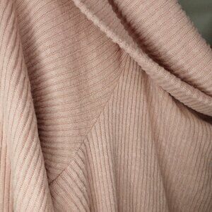 UEC Maurice's Cowl Neck Cinch Shoulder Sweater Blush Pink Ribbed Coquette sz 1X