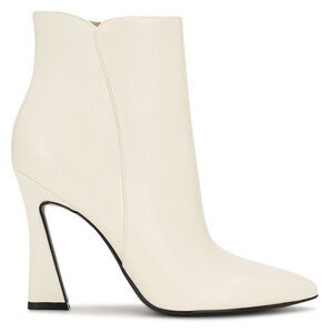 These Nine West ankle booties in white feature a pointed toe and a sleek, minimalist design. Crafted with a smooth, high-quality finish, they offer a modern silhouette perfect for versatile styling.