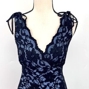 UEC Ruby Rox black lace cocktail dress with light blue lining size medium