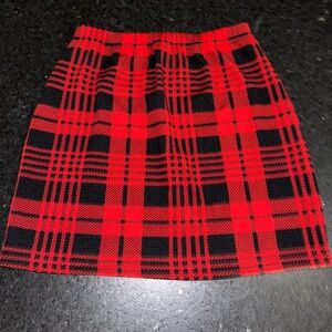 Chic checkered mini skirt. Bold red and black design. Ideal for casual or Christmas outings