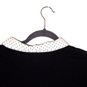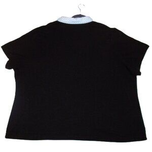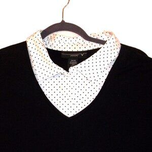 UEC Women's 26/28 (4X) Venezia Black & White Layered Shirt with Collar. It's a soft stretchy black SS t-shirt with a white blouse collar with tiny black polka dots. Perfect for business casual or a pair of jeans or shorts.