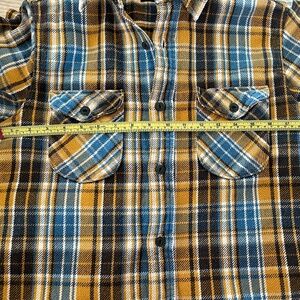 This is a very cool, heavy flannel made in Japan. Tagged as a 3 (Japan large/US medium) but fits measures and fits like a 2 (Japan medium/US small). Used but in good condition